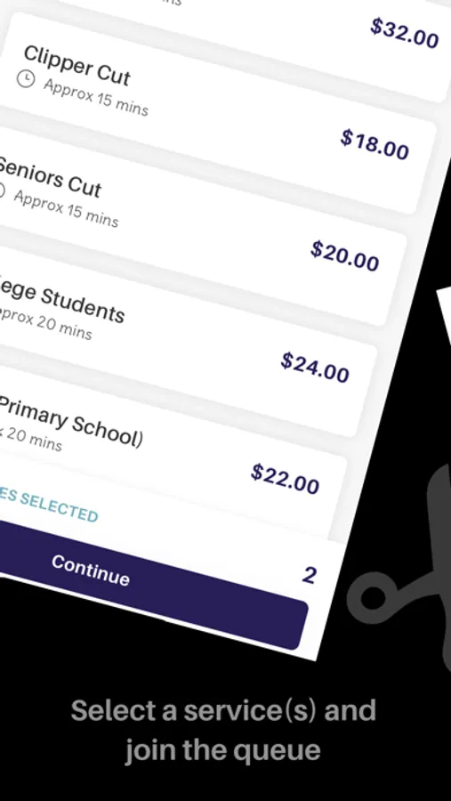 It’s super easy to use, select your Barbershop, choose a barber, select a service or services and join the queue.
