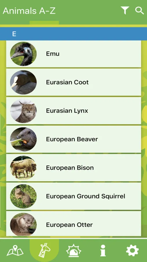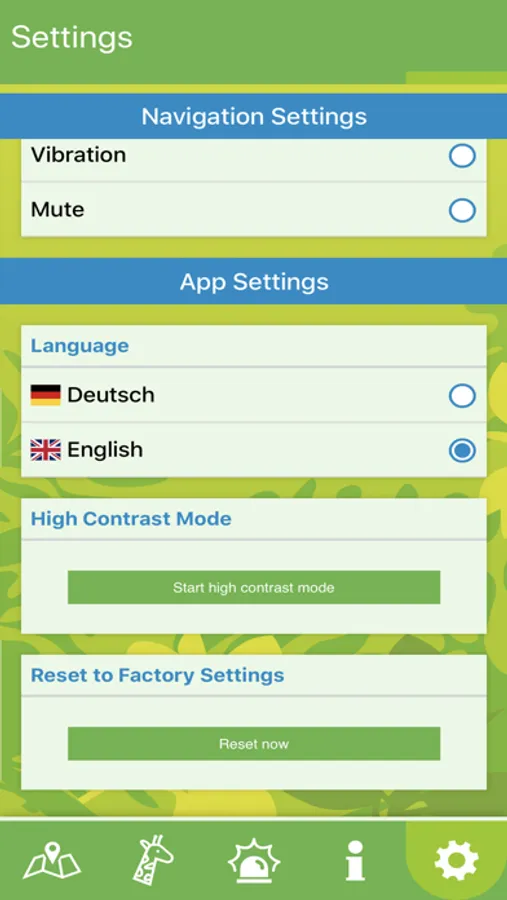 The languages German and English can be set for the Tiergarten app and the integrated audioguide: