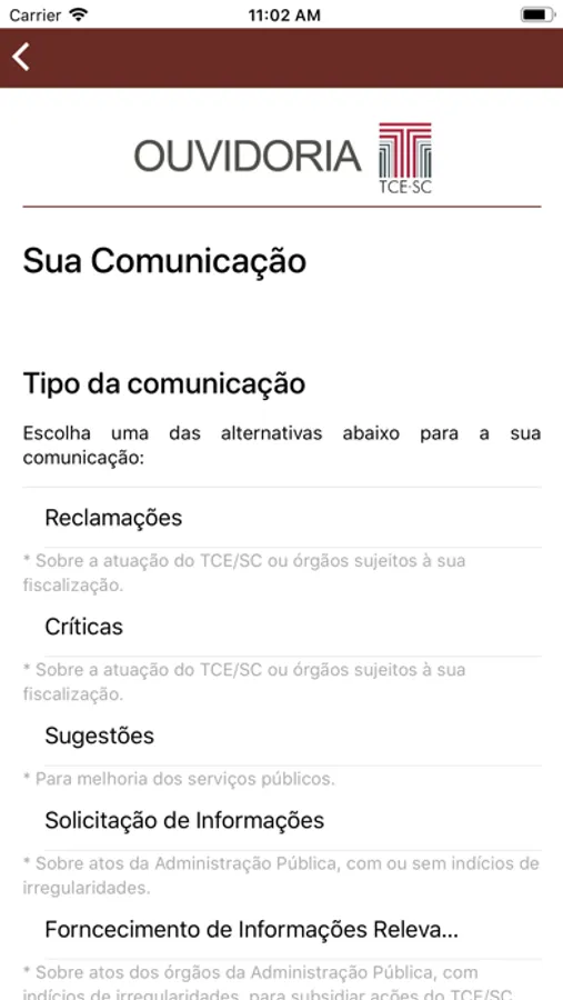 Aqui todo cidadão pode encaminhar críticas e sugestões, além de solicitar informações sobre os serviços prestados pelo próprio TCE/SC e os resultados dos órgãos públicos do Estado e dos municípios catarinenses sujeitos a sua fiscalização.