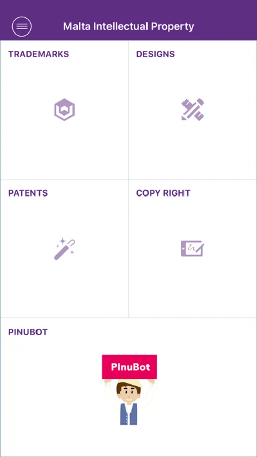 App li tipprovdi assistenza lil individwi u entitajiet interessati fil-qasam tal-Propjetà Intellettwali. Din l-app tipprommwovi n-numru vast ta’ servizzi offruti mid-Direttorat tal-Propjetà Industrijali fid-Dipartiment tal-Kummerċ