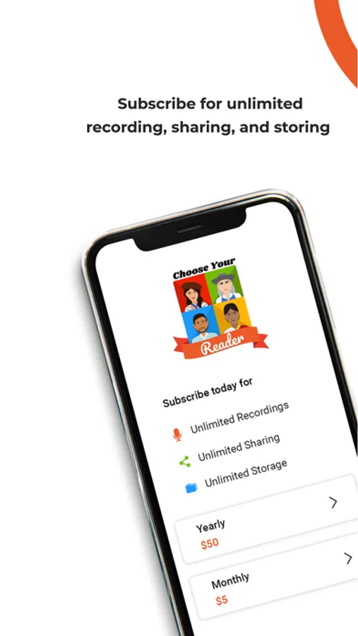 Introducing Choose Your Reader, the mobile app for the modern family. Choose Your Reader allows parents, grandparents, aunts, uncles, and anyone who loves a child to read to a child from anywhere they have an internet connection. Our innovative app allows you to record your own voice with our stories. The child plays the story and hears your voice. And in the process, the child learns to read.