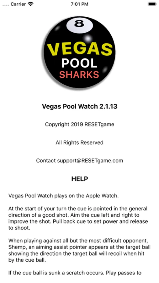 This free 'lite' version plays games up to 4 points. For full games and a shot undo feature please buy the full version, Vegas Pool Sharks Watch.
