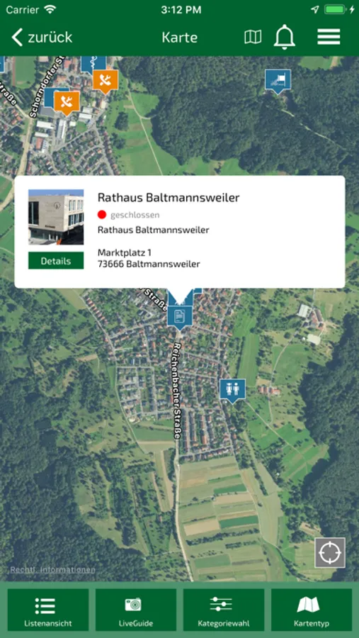 Die App verfügt neben der Karten- und Satellitenplan-Funktion auch über eine „Augmented Reality-Anwendung“. Sie öffnen die App und betrachten über die Kamerafunktion Ihres mobilen Gerätes den Ort und die Objekte und es können direkt Informationen abgerufen werden.