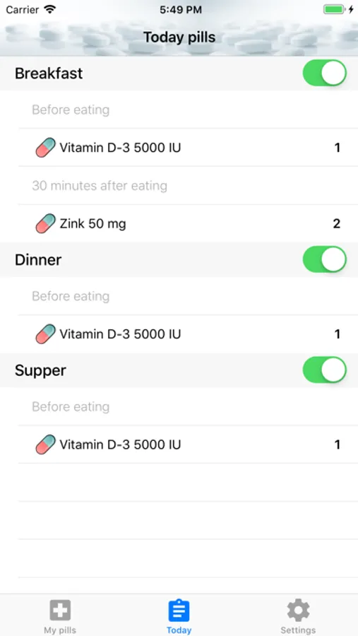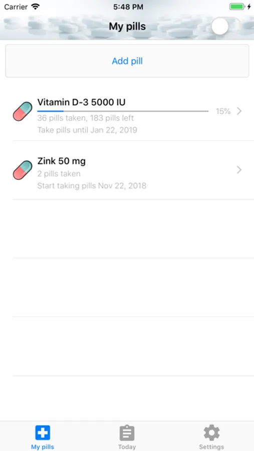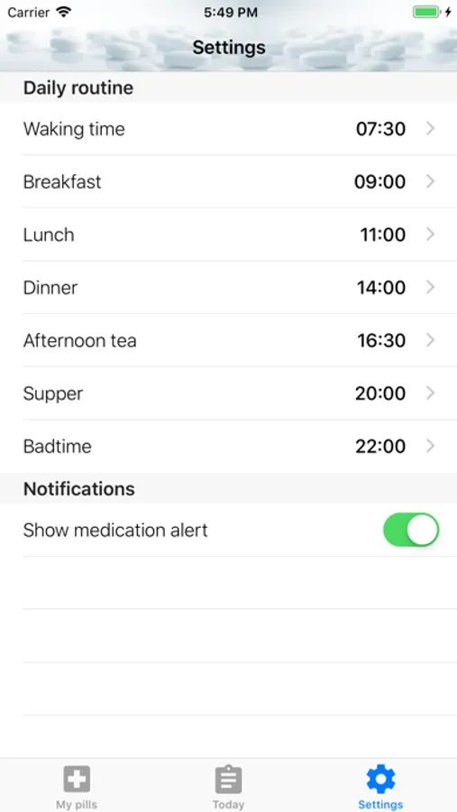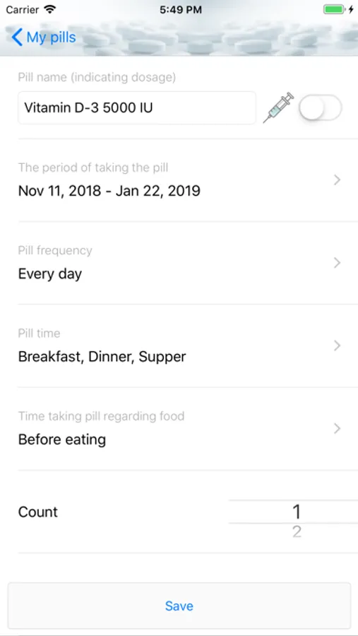 Just add your medication to the Pillbox and fill how and when to take it.