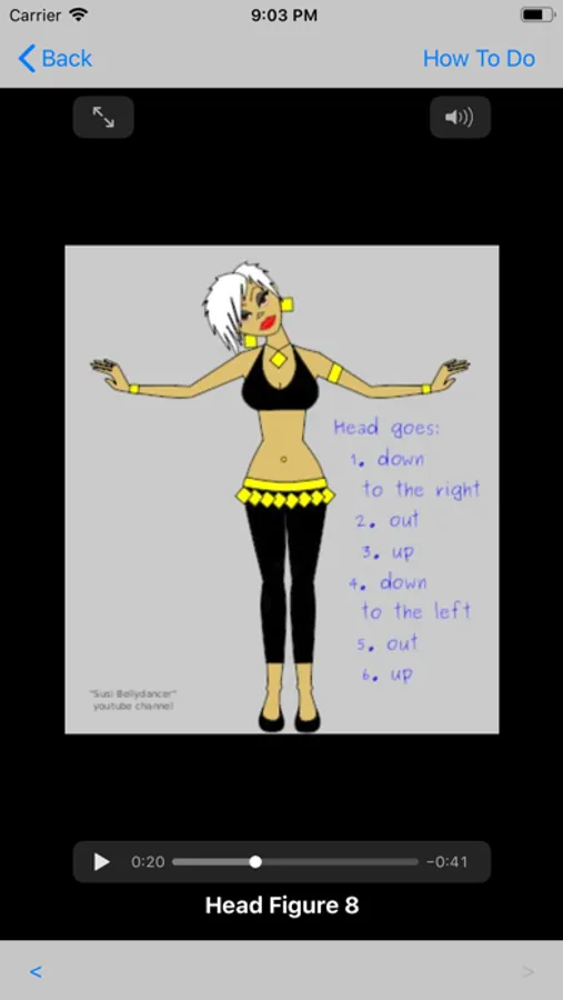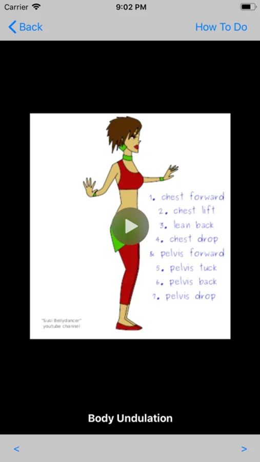 During a set of instructional videos, you will learn all possible belly dance moves that can be done with each part of your body. Susi breaks down each move in a number of simple steps. Then she puts them together, smooths it out and gradually speeds it up.