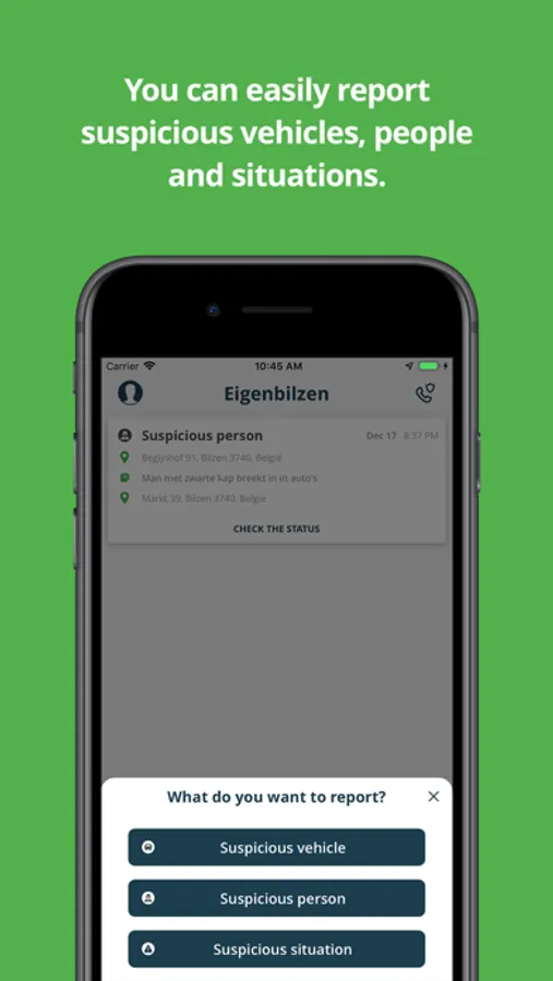 Through this FREE buurtpreventie24 app you receive push messages as soon as a suspicious vehicle, person or situation is reported in your neighborhood. You can add messages with exact location yourself. So you immediately warn your neighborhood and you help the police to intervene quickly in the right place.