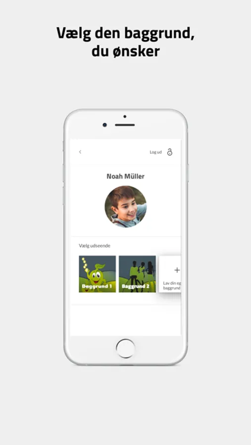I app'en kan du vælge en af de to standard baggrunde - eller bruge ét af dine egne billeder.