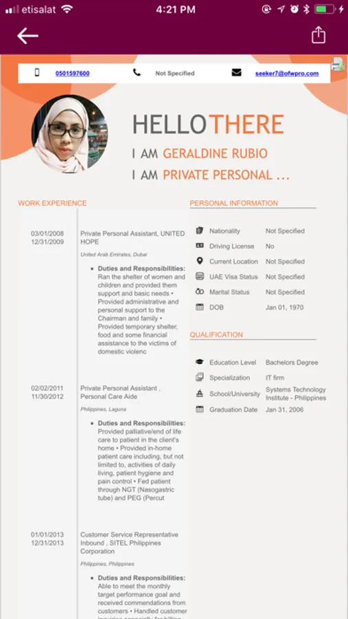 5. Jobseekers can also SHARE their OFWpro profile on all social media platform such as Facebook, Twitter, WhatsApp, etc. to increase their chances of getting hired fast.