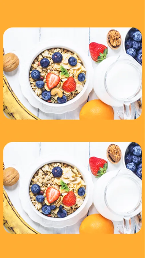 Find The Differences - Spot Difference is a game hidden differences between two pictures, find 5 differences and spot it. Compare pictures of food, find and spot the differences. Attention test, concentration exercises with the find differences - hidden differences game.