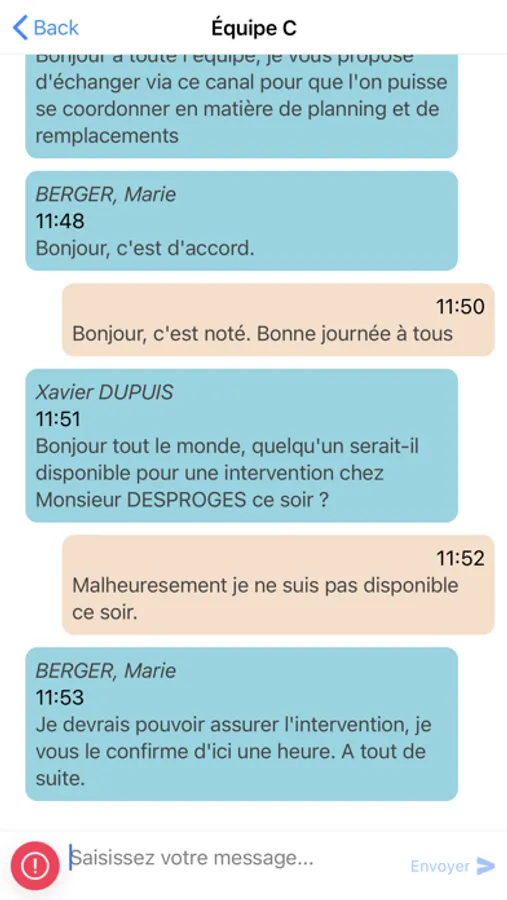 Le personnel gestionnaire peut communiquer avec les intervenants via un système de messagerie instantanée sous forme d’un fil de discussion simple et intuitif.