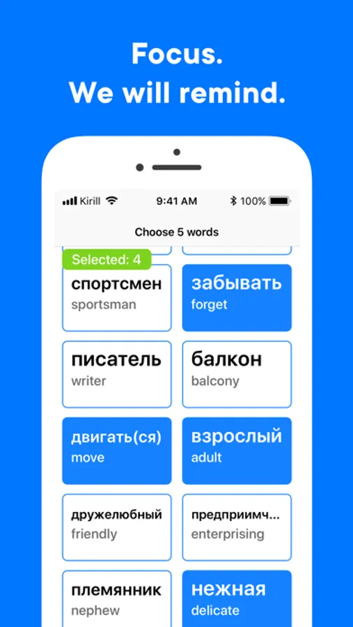 The app also offers 7 days free trial period under the conditions of Monthly PREMIUM subscription for unlimited new words and premium features including the ability to learn English & Russian languages.