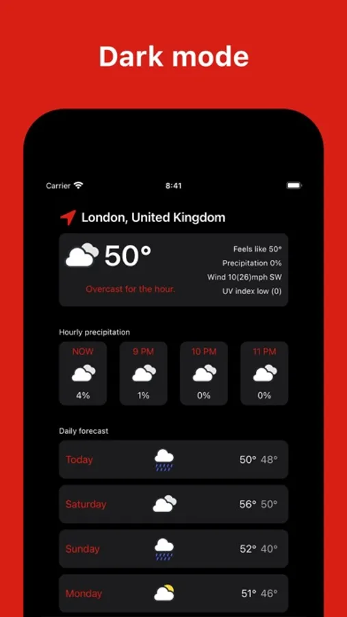 - Tap on the daily cards to view conditions like cloud cover or sunrise/sunset