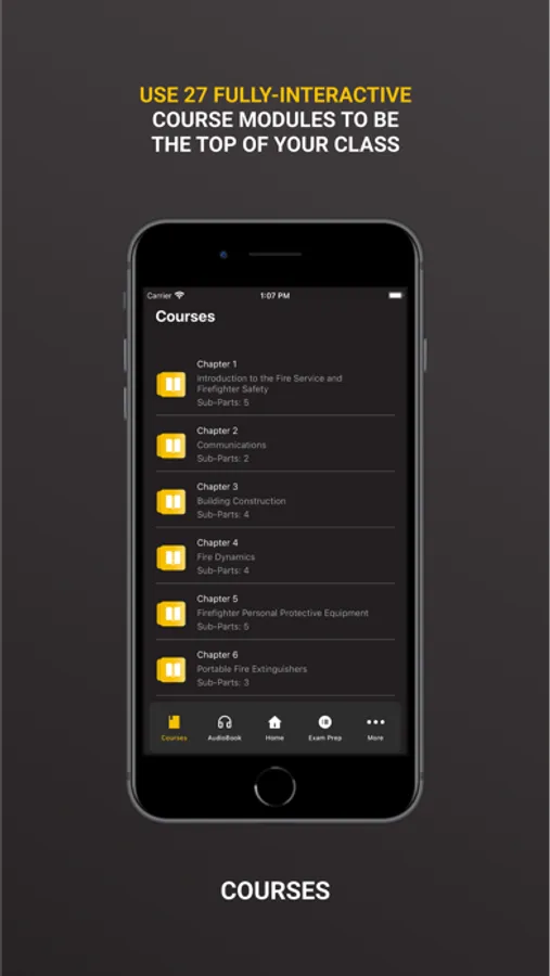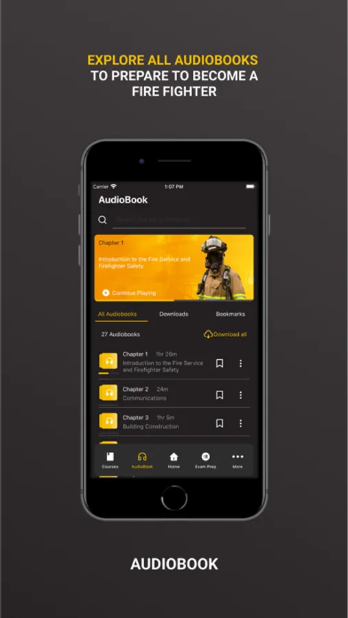 Purchase the Essentials of Fire Fighting, 7th Edition, Audiobook through the app. All 27 chapters are narrated in their entirety for 34 hours of content. Features include offline access, bookmarks, and the ability to listen at your own speed. All users have free access to Chapter 1.