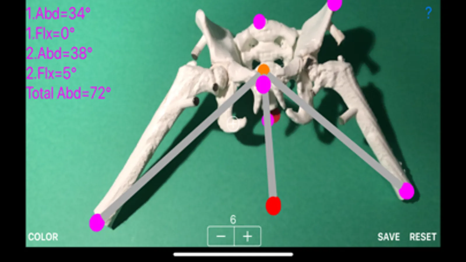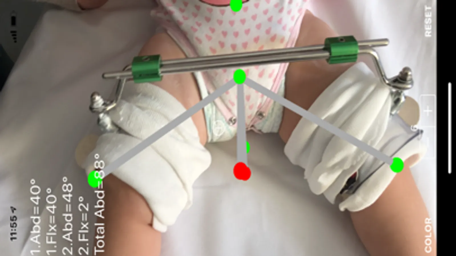 To achieve a favourable outcome in treatment of Developmental Dysplasia of the Hip (DDH) the surgeon must measure the degree of abduction or flexion objectively in each patients visit. According to surgeons’ experience the degree of abduction or flexion of the splint or flexion harness should be modulated. This procedure in busy everyday clinical settings it is time and effort consuming. The degree of flexion and abduction of the thighs placed by the harness or the splint could be measured by using simple plastic orthopaedic goniometer but you have to measure two angle for each hip namely to measure four times and record manually the degree of four angles in each patient’s visit. Tedious work full of errors due to baby movements and at the end confusing results. The app helps expedite the procedure and record the measurement effortlessly.