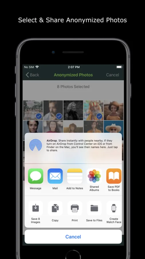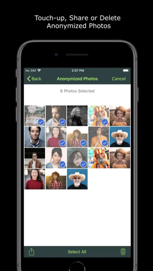 - Partial or unclear faces in photos may not be anonymized. Use the touch-up feature to finalize photos before sharing