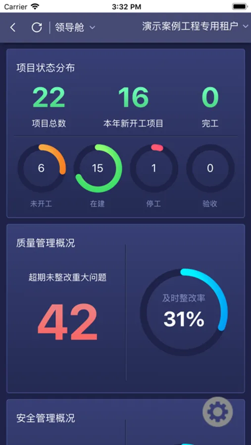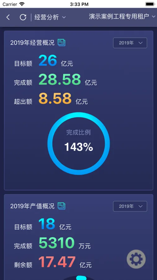企业BI移动端是广联达企业BI系统的移动端,用户通过该APP,根据不同的用户角色,查看各自岗位的BI展示数据。
