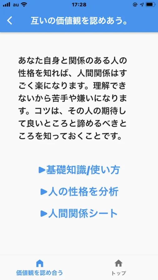 『自分と他人の価値観を理解する』では、知情意論による各人の価値観をしっかりと認識し『人間関係表』を見ることで以下の様な苦しみが半減します。