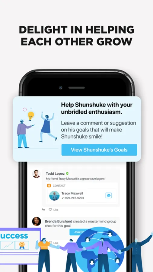Stretch your dreams and discover new passions with our inspirational goal planner. Keep track of your goals, pick who you want to share them with. Keep a pulse on what friends need in just a few minutes a day. Delight in helping each other grow by providing encouragement, advice, suggestions, or referrals. Win cash and cool prizes for helping one another. Mastermind your way to success.