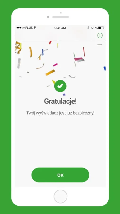 Wykonanie testu wyświetlacza i aktywacja ochrony są niezwykle proste – wystarczy podążać za instrukcjami w aplikacji. Na początku przygotuj telefon, wyczyść jego ekran i znajdź odpowiednie lustro. Potem wystarczy jedno zdjęcie w jego tafli, po wykonaniu którego zaawansowane algorytmy aplikacji sprawdzą stan wyświetlacza i jeśli Twój ekran nie jest uszkodzony, pozwolą Ci aktywować usługę Serwis Wyświetlacza. Potem pozostaje Ci już tylko beztrosko korzystać ze swojego smartfona !