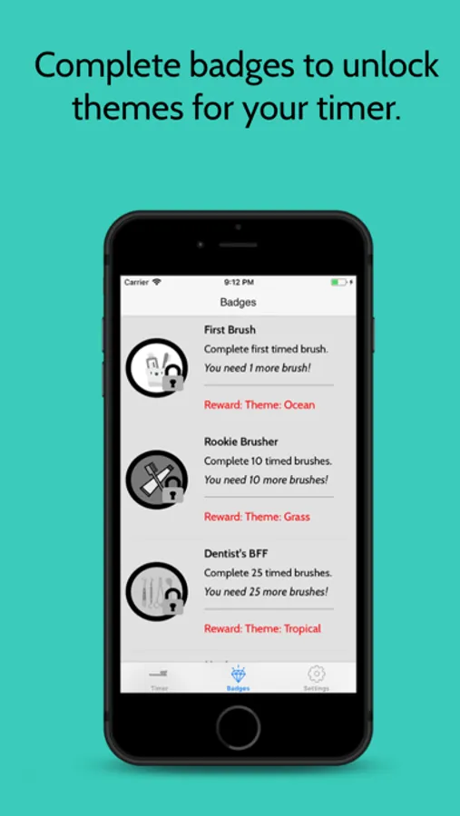 • Badges that could be unlocked by accomplishing various milestones in the app, granting the user fun themes for their timer