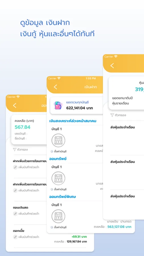 - ดูยอดเงิน รายการเคลื่อนไหวบัญชีเงินฝาก