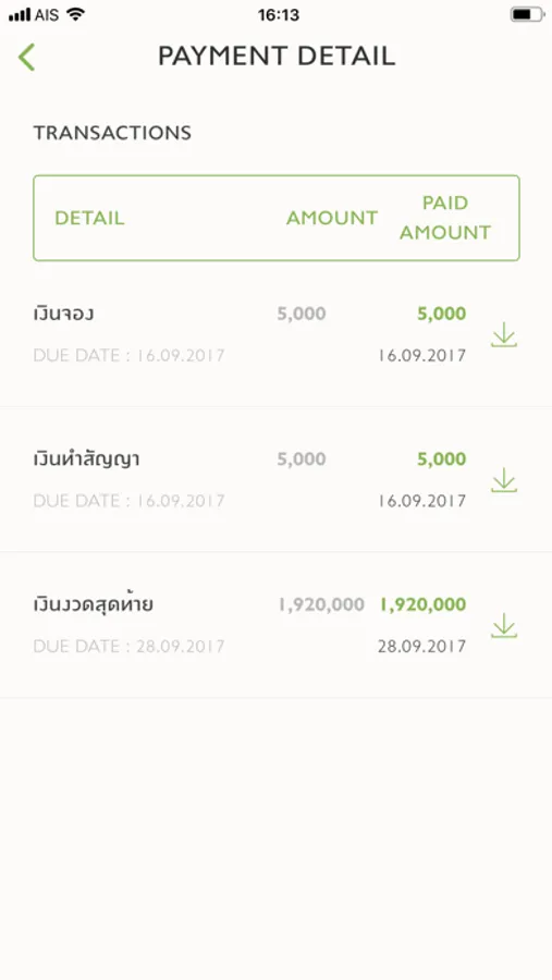 - Down Payment : ตรวจสอบข้อมูลและชำระยอดผ่อนดาวน์