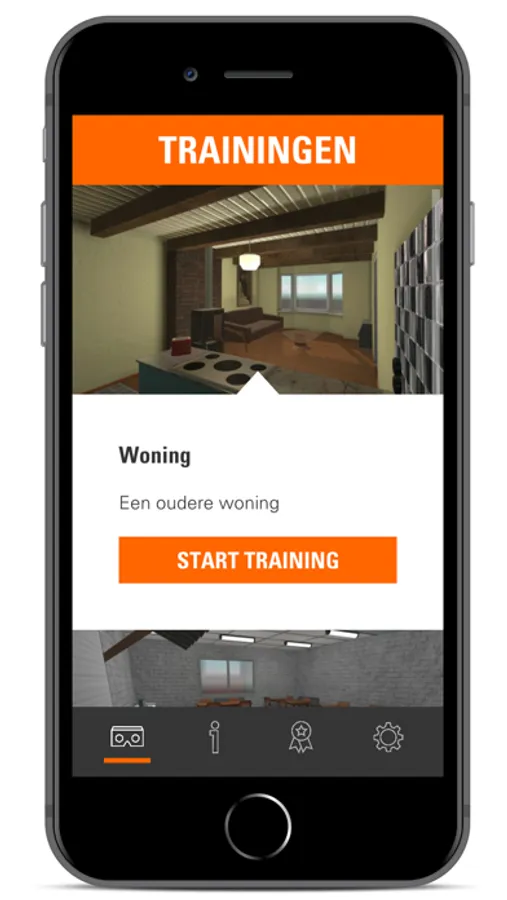 Using only your phone and cardboard VR glasses you can look around in 360 degrees, select objects, asses their risks and receive feedback about you choices.