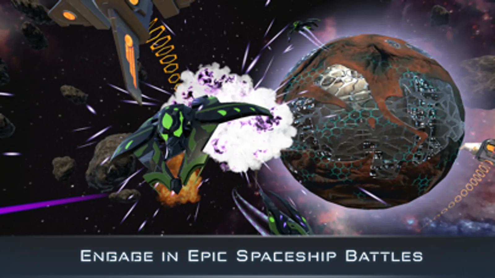 Ascend to the stars, colonize new worlds and conquer enemy planets. Build your massive spaceship fleet and get ready for the largest battle the galaxy has ever seen. Learn the best tactics, turn the tide of war with the right strategy. Knowing when to defend and when to attack can be the difference between victory and defeat. Plan your moves wisely as you might not have many. Dominate your opponents in monumental spaceship battles. The fate of the galaxy rests in your hands. Be bold or be destroyed!