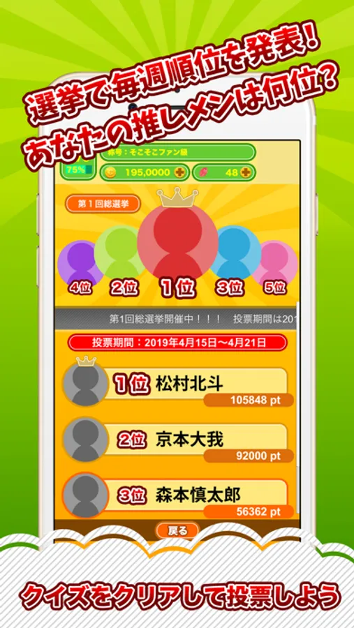 全国のファンとクイズで対戦!総選挙で推しメンをランキング1位に押し上げろ!