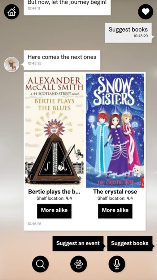 - Voice search allows you to describe vocally which themes you would like to see in the book suggestions. The operation uses semantic calculation to understand the desired themes based on the word meanings.