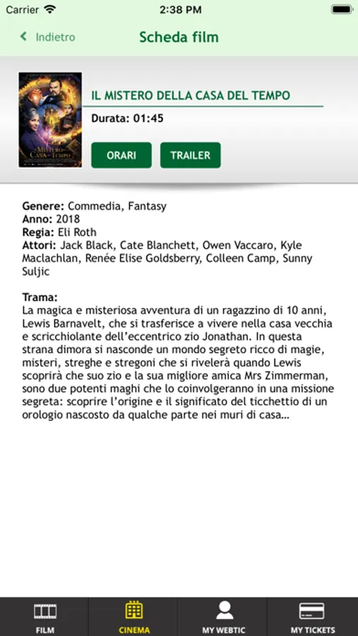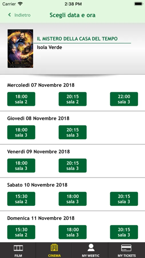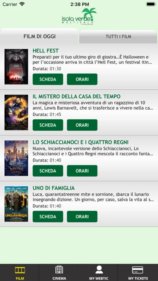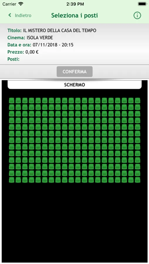 Applicazione di Crea Informatica, per l'acquisto e la prenotazione dei posti nel prestigioso cinema Isola Verde di Pisa.