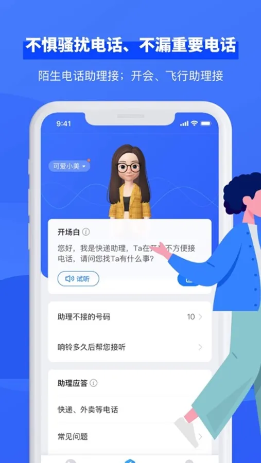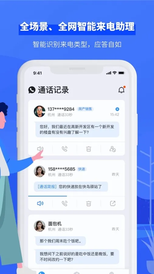 开会、开车、睡觉、玩游戏等不方便接听电话时,我们都不希望自己当前的节奏被打断,但直接拒接电话,又害怕错过重要的事情。接听宝可以帮您先接听电话,并做好记录。如果是重要事情,您可以选择事后再联系处理。
