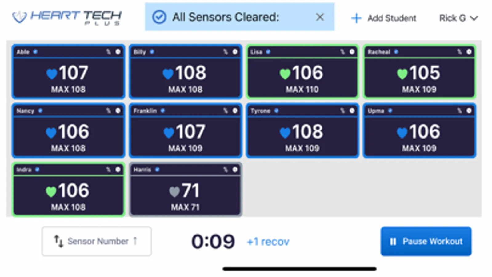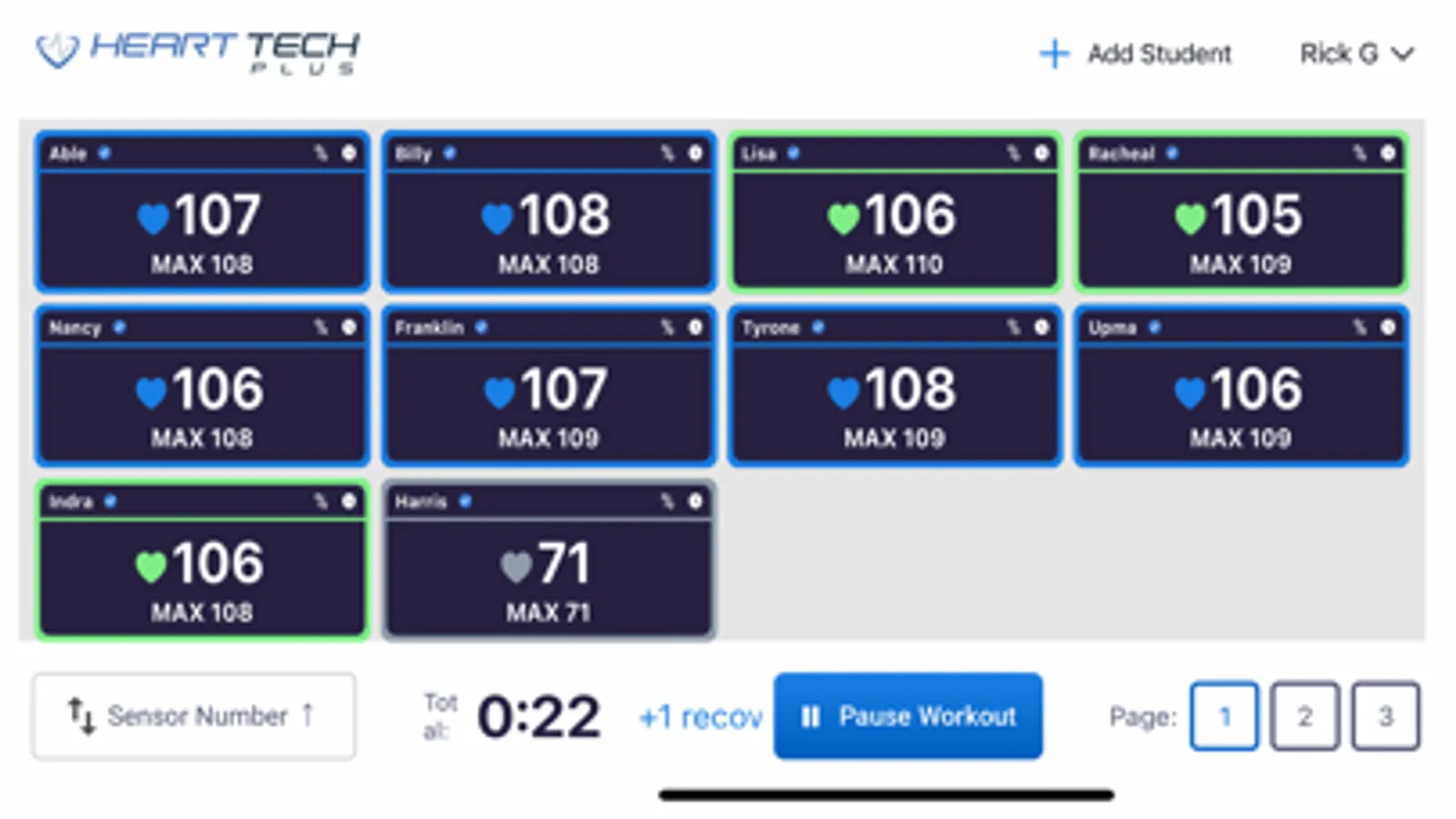 The Heart Tech Plus (HTP) platform enables instructors, trainers, coaches and PE teachers to assist clients or students with achieving individual results during group fitness activity. By showing each participant's data live on a big display, then storing it in a secure web portal for later access, both instructors and students can view, review, study/analyze their data, then set appropriate fitness goals. The platform allows continuous adjustment of goals, based on accumulated data.