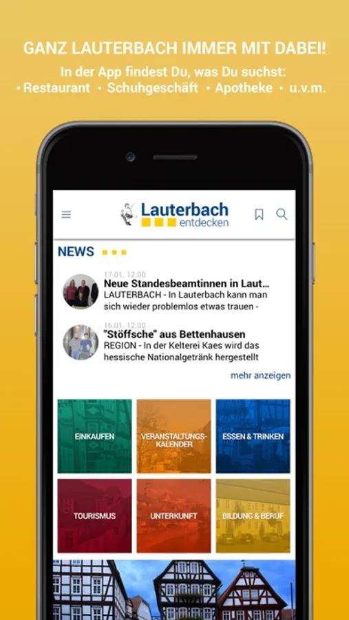 DEIN optimaler Begleiter durch die gesamte Stadt und Region – die Lauterbach entdecken App! Ob Lauterbacher Bürger oder Tourist, Student oder Rentner, Familien oder Partygänger – für jeden ist etwas dabei! Das erwartet euch in der App: