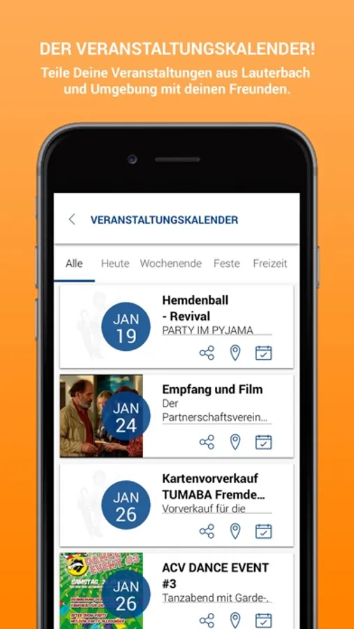 Nutzt alle Funktionen, die euer Smartphone bietet auch in der App! Lasst euch direkt zu den Events navigieren, die mit einem Klick auch in eurem Kalender sind - so verpasst ihr nix. Schaut rein und entdeckt eure Stadt Lauterbach!