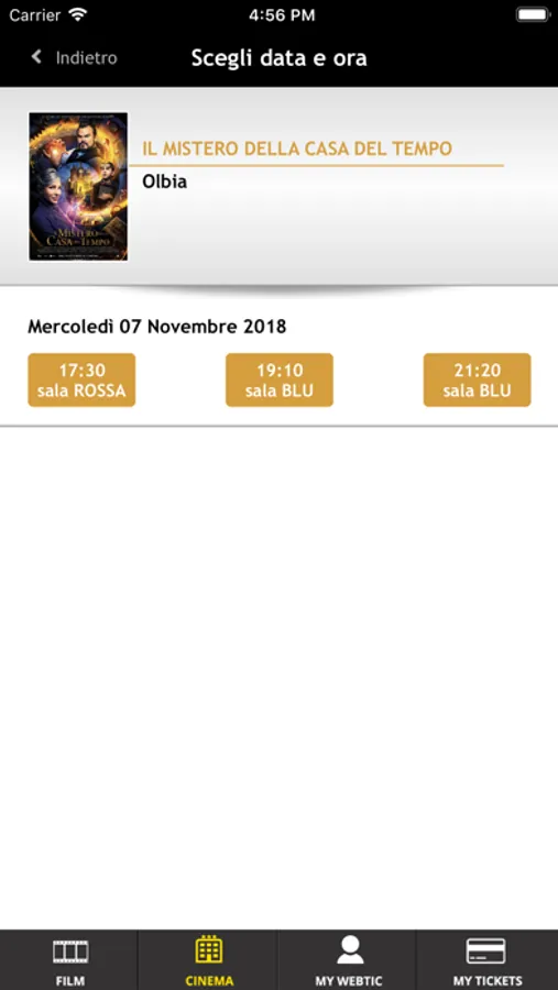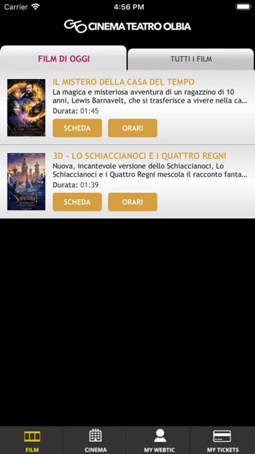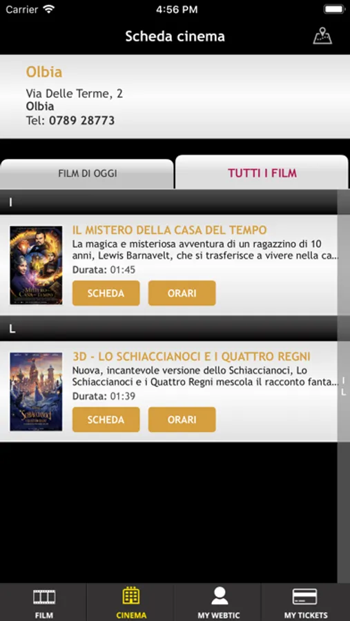 Applicazione di Crea Informatica, per l'acquisto e la prenotazione dei posti nel prestigioso cinema teatro Olbia.