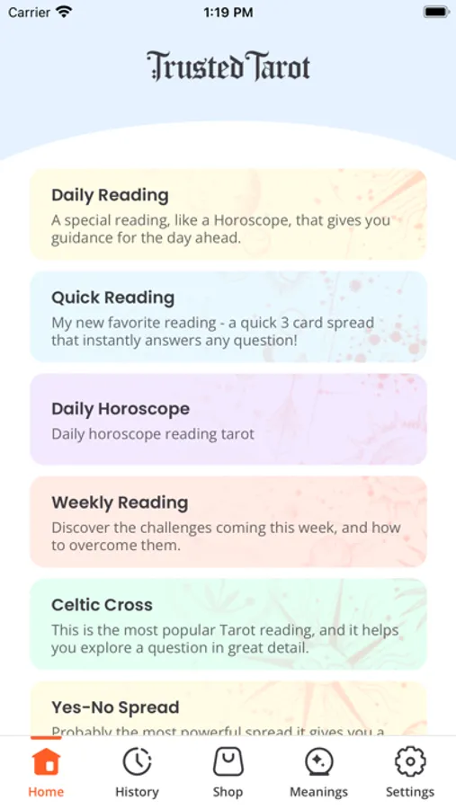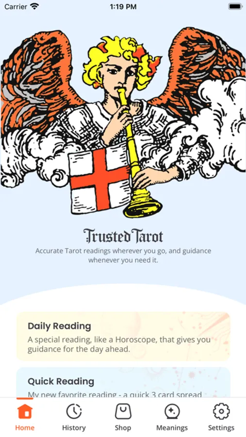 See why Trusted Tarot is the most popular Tarot app in the world! Now with even more daily guidance - get 12x more bonus readings and UNLIMITED Celtic Cross readings. Carry our accurate Tarot readings with you wherever you go, and get accurate horoscopes and insights whenever you need them.
