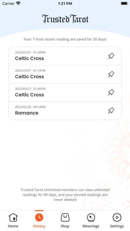 If you love our readings as much as we hope you do, you have the option to support our work and buy unlimited premium readings in the app with a Trusted Tarot Unlimited subscription.