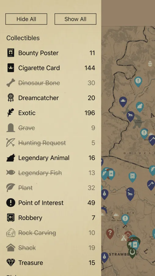 • Progress Tracker - mark locations as found and track the progress of your collectables.