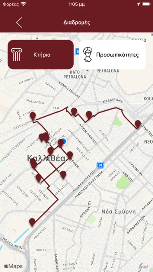 Με την εγκατάσταση του καινοτόμου ηλεκτρονικού εξοπλισμού των ηλεκτρονικών φάρων (iBeacons) και της τεχνολογίας της επαυξημένης πραγματικότητας (Augmented Reality), ο εκάστοτε περιηγητής μπορεί να χρησιμοποιήσει την εφαρμογή στην συσκευή του για να περιηγηθεί εύκολα, να προσεγγίσει όλα τα ενδιαφέροντα ιστορικά, πολιτιστικά και περιβαλλοντικά σημεία της Καλλιθέας και να ενημερωθεί για το καθένα από αυτά.