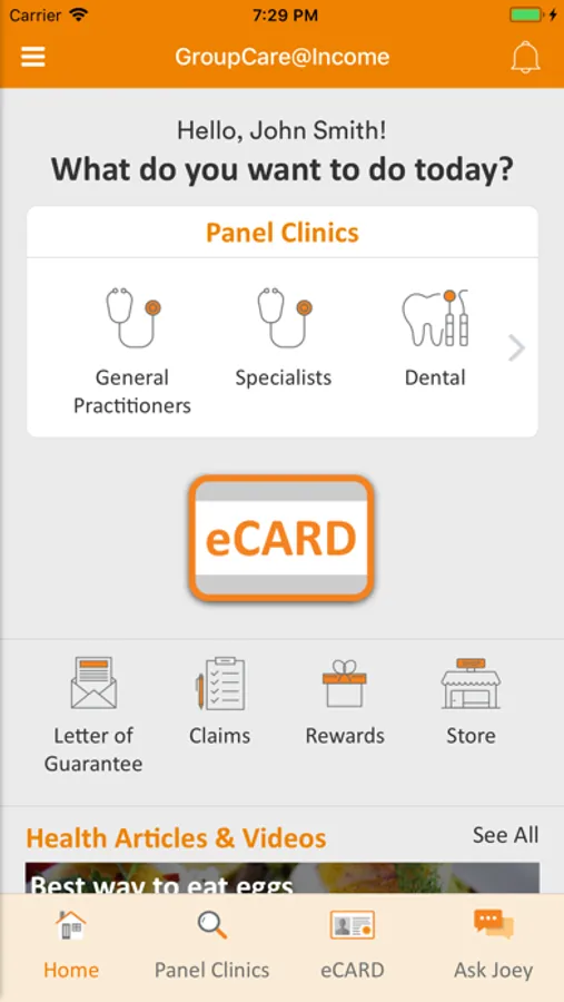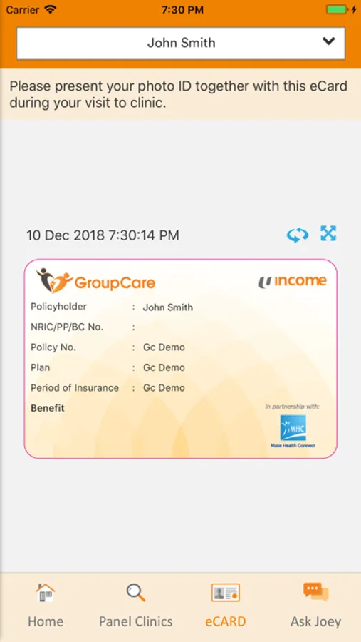 Exclusive to our members only. Forgotten your card on your visit to the clinic? You can now retrieve your eCard instantly. Access rights must be enabled by HR Manager first.