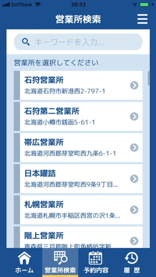 各営業所で設定された時間帯別の入庫可能枠に対して、入庫の希望時間を予約できるアプリです。