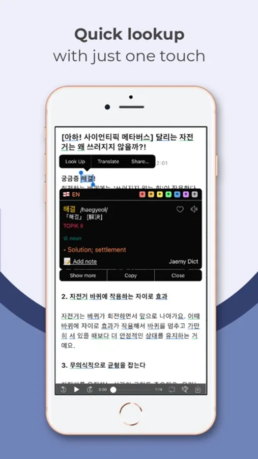 This app let you reading, listening and watching daily news provided by DongA News, Chosun News, VOA Korean, Joongang News in a very simple Korean.