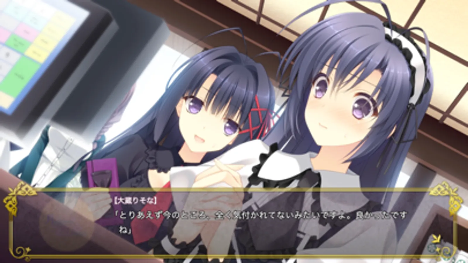 2点タップ : セーブ/ロード/環境設定/共有/タイトルに戻る/ヘルプ/バージョン情報を選択できます。