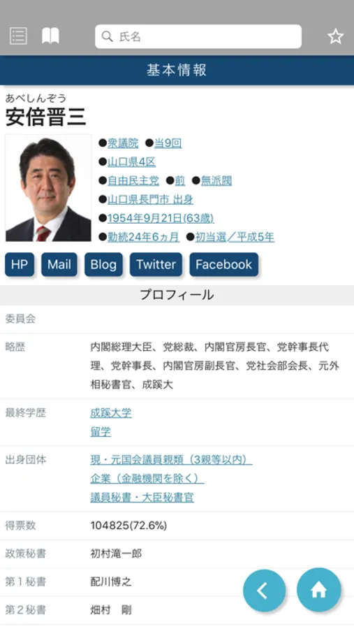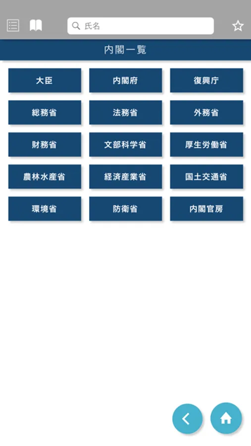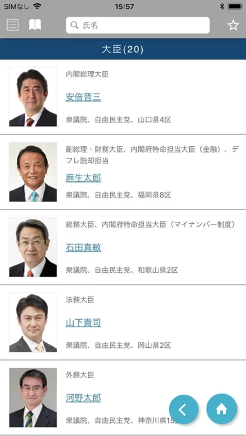 ・各種一覧:国会の勢力分野、大臣・秘書官・副大臣・大臣政務官・事務次官一覧、衆・参両院常任・特別委員長、委員会、各政党役員、衆・参議員議員勤続年数・当選回数表、党派別国会議員一覧、自由民衆党内派閥一覧、省庁幹部職員情報、地方庁