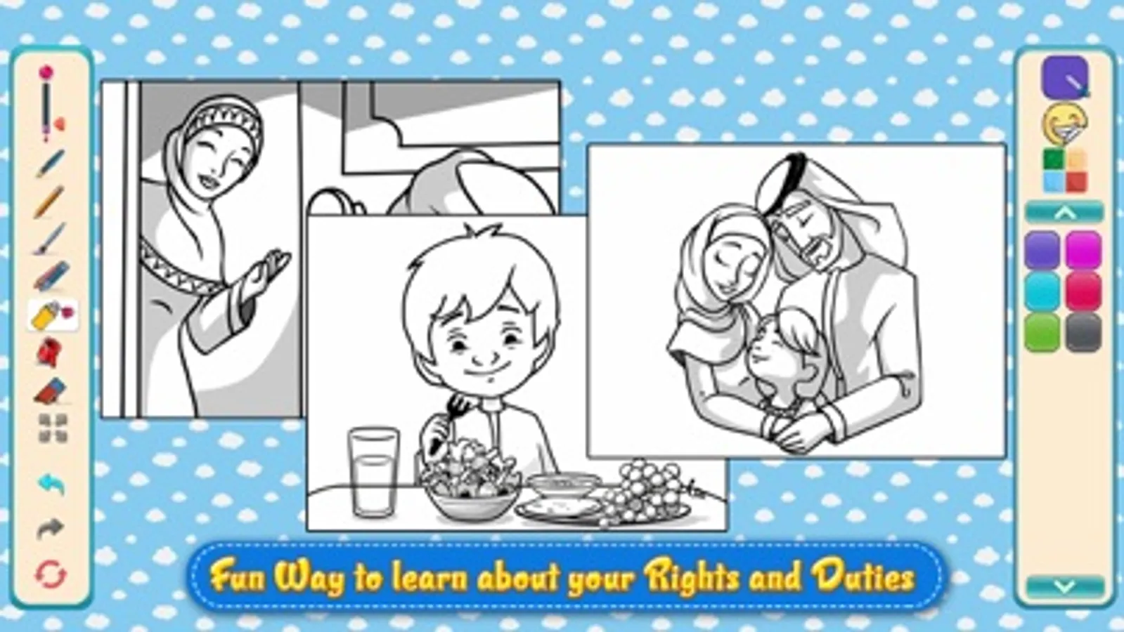 The game 'My Rights and Duties' developed by Dubai Police is one of the games that represent the importance of educating future youth in the best way and aim to raise children's awareness of personal rights and duties towards their family and society. Play this game to raise your level of awareness and responsibilities towards the community. Learn about your rights in a fun and simple way. The game contains four types of interesting games and three worlds with more than 100 fun stages.