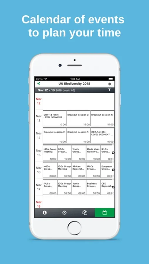 Information on CBD/UN Biodiversity conferences and related events is available to you at the touch of your finger. Access important information including agendas, descriptions, in-session documents and activity dates and times. You can create a custom schedule to help you manage your time while at the event or download documents to read on the go or offline. Provided by the Secretariat of the Convention on Biological Diversity (SCBD).