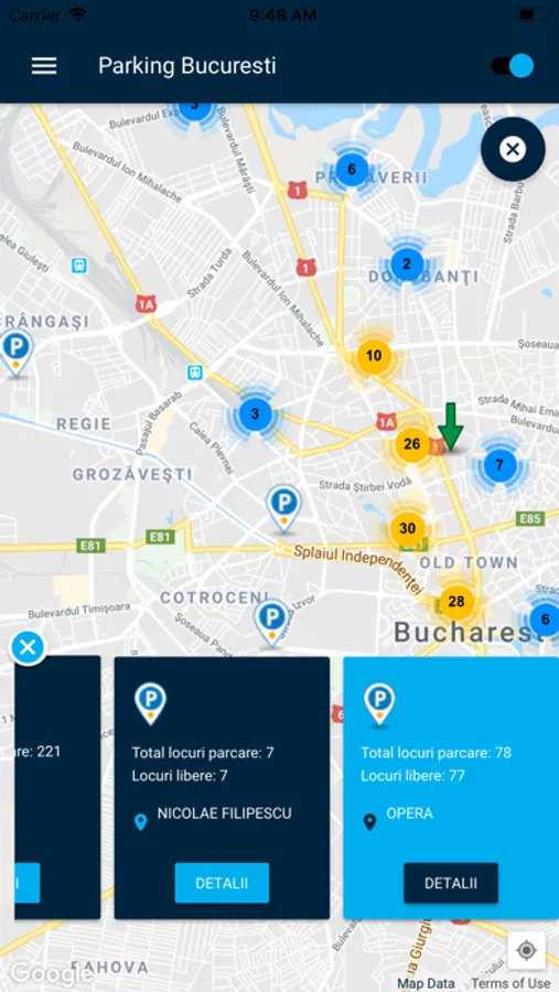 - sa identifici locurile disponibile din cea mai apropiata parcare;