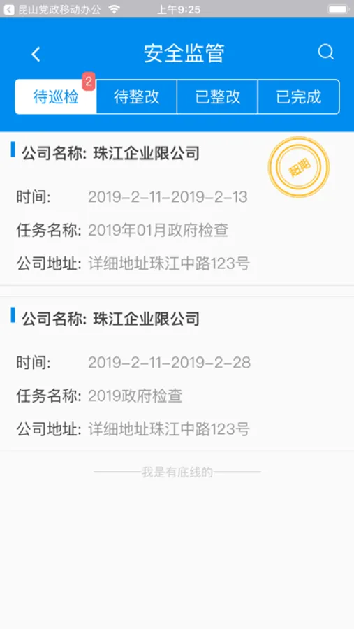 执行人员进行督查企业级的安全隐患,指出需要注意的安全问题;