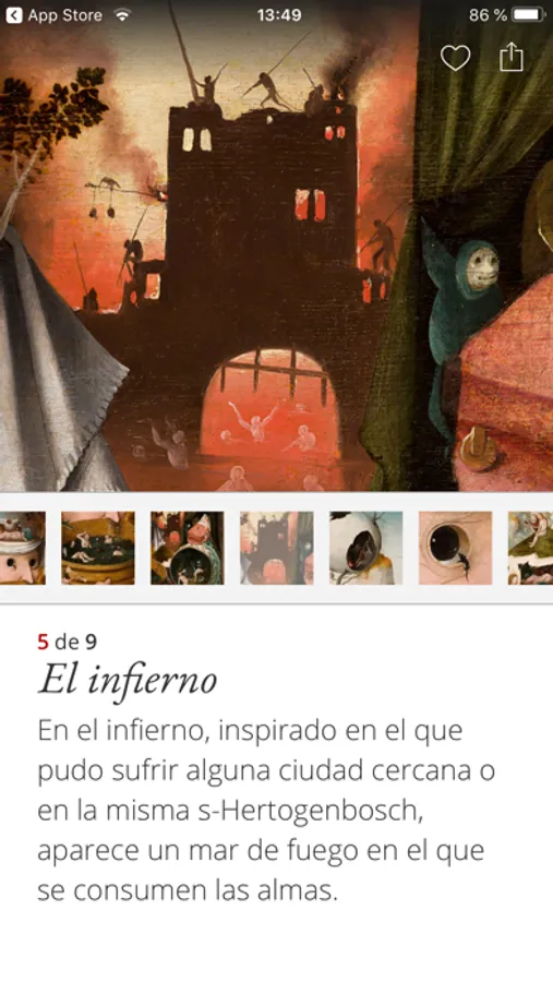 Descárgate la app totalmente gratis en tu teléfono móvil, tableta u ordenador; explora en las obras de El Bosco, Giovanni Antonio Boltraffio, Gerard David, Jacob Marrell, Juan Carreño de Miranda, Francisco de Goya o Federico de Madrazo.